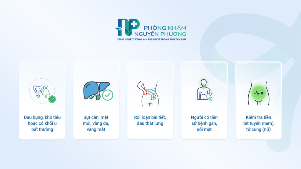 - Nhóm bệnh lý mãn tính: Người có tiền sử viêm gan B/C, xơ gan, sỏi mật cần siêu âm định kỳ để theo dõi tiến triển