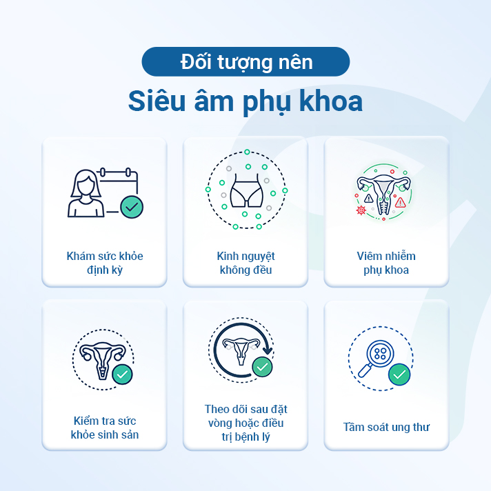 - Gói siêu âm phụ khoa được thiết kế để chủ động đánh giá toàn diện cấu trúc tử cung, buồng trứng và xác định sớm các bệnh lý tiềm ẩn (như u xơ, u nang, viêm nhiễm) ngay cả khi chưa có triệu chứng.