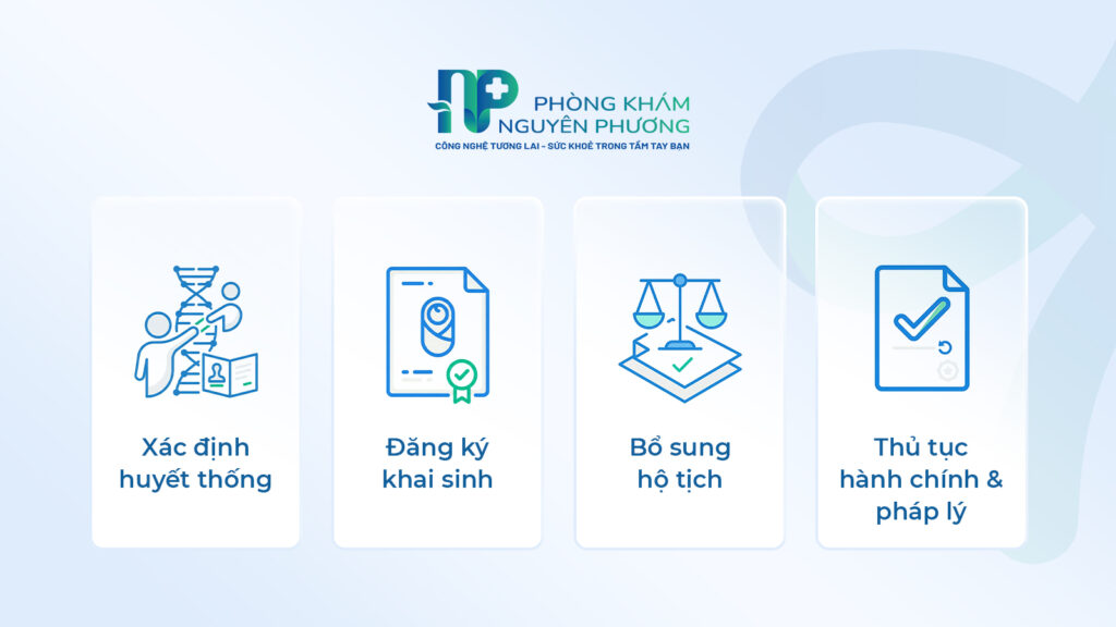 - Xác định huyết thống: Khẳng định chính xác quan hệ Cha (Mẹ) – Con.