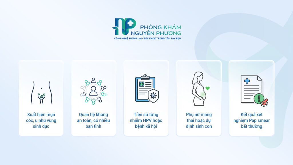 - Phát hiện mụn cóc, nốt sần bất thường ở vùng sinh dục, cổ tử cung, âm đạo, hậu môn