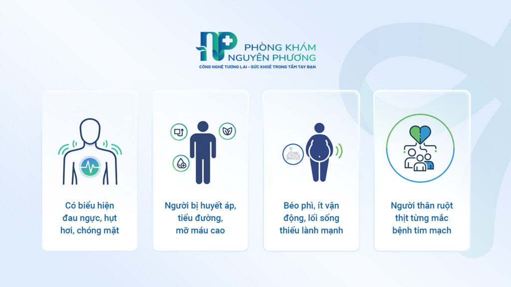 - Nhóm có dấu hiệu lâm sàng: Xuất hiện cơn đau tức ngực, hụt hơi, chóng mặt hoặc cảm giác tim đập nhanh.